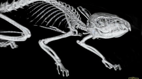 Jetzt begann die Arbeit für ein Team von Grafikspezialisten. Wir betraten fernsehtechnisches Neuland, denn wir wollten uns nicht mit idealisierten Modellen des Innenlebens von Mensch und Tier zufrieden geben. Stattdessen sollte, mit Hilfe der Röntgenbilder, die reale Anatomie exakt wiedergegeben und möglichst mit der „äußeren Hülle“ der Tiere kombiniert werden. Mit einer Spezialsoftware und besonders leistungsfähigen Computern wurden die CT-Scans zu dreidimensionalen Grafiken verarbeitet. Das ermöglichte es, die Skelette der Tiere bis ins kleinste Detail plastisch abzubilden, in jegliche Richtung zu drehen und diese Bilder in die Aufnahmen lebender Tiere regelrecht hineinzubauen.