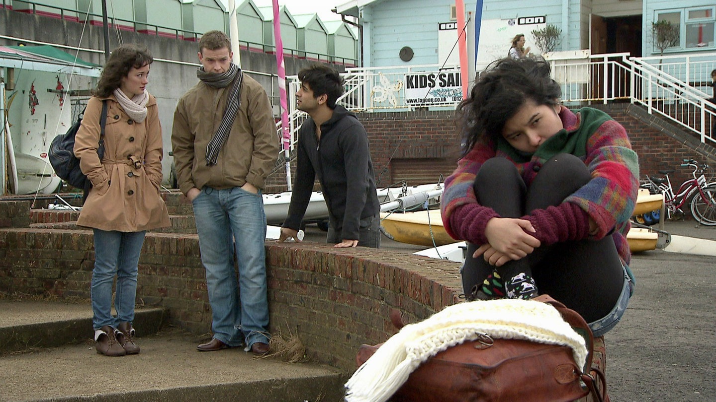 Wir schlagen vor, den Film bei einer Szene zu unterbrechen. "Sound only" ist eine Methode, das Verständnis des Films zu erleichtern. Die Schülerinnen und Schüler konzentrieren sich zunächst nur auf den Ton, die Sprache und die Geräusche und stellen Vermutungen an, was in der Szene wohl zu sehen sein wird. Wir haben zwei Varianten: In einer sehr einfachen Variante geht es um die Szene, die die Schüler in der "pre-viewing activity" bearbeitet haben (Timecode 02:25 – 03:34 Min.). Dazu erhalten sie auf Arbeitsblatt 3 "Sound only" eine Auswahl von Screenshots aus der Folge, von denen aber nicht alle aus dieser Szene stammen. Die Schüler kreuzen nach dem Hören an, welche Bilder in der Szene vorkommen. Im Anschluss ordnen sie die Sätze den Einstellungen zu, die ihrer Meinung nach zu den Fotos und dem Ton passen. Sie tauschen sich mit einem Partner über ihre Lösung aus.