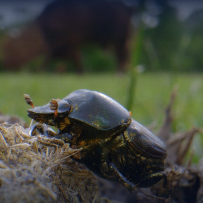 Kuhfladen und Pferdeäpfel sind der Lebensraum vieler Insekten wie Fliegen und Käfer. Manche – wie der Dungkäfer – ernähren sich friedfertig vom Dung, andere, räuberische Arten, nutzen den Dung als Jagdrevier. Aber alle leisten einen wichtigen Beitrag für den Nährstoffkreislauf und das Ökosystem.