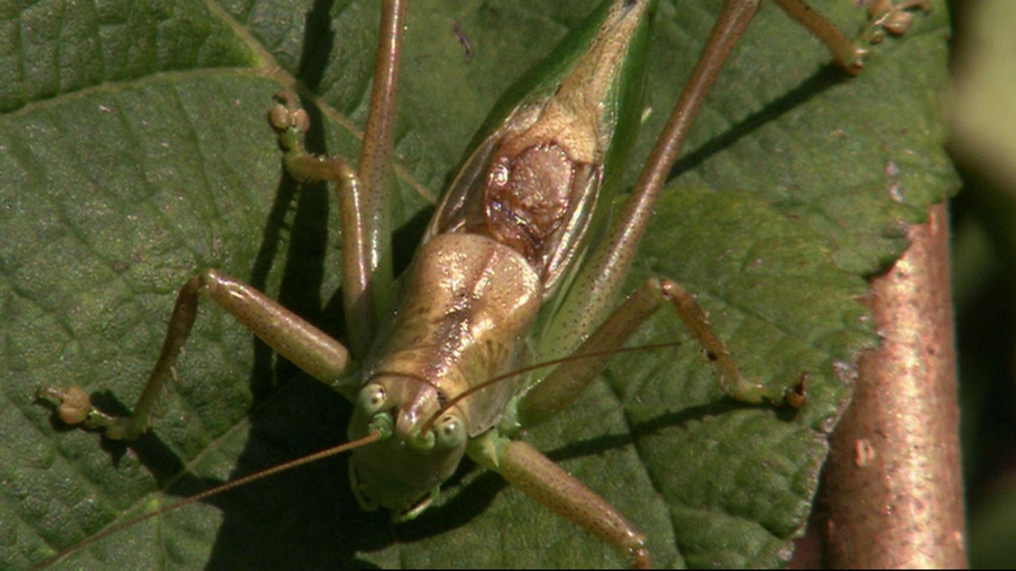Grillen und Heuschrecken zirpen. Sie verständigen sich also mit Schall, dabei haben sie gar keine Ohren am Kopf. Was ist ihr Geheimnis?