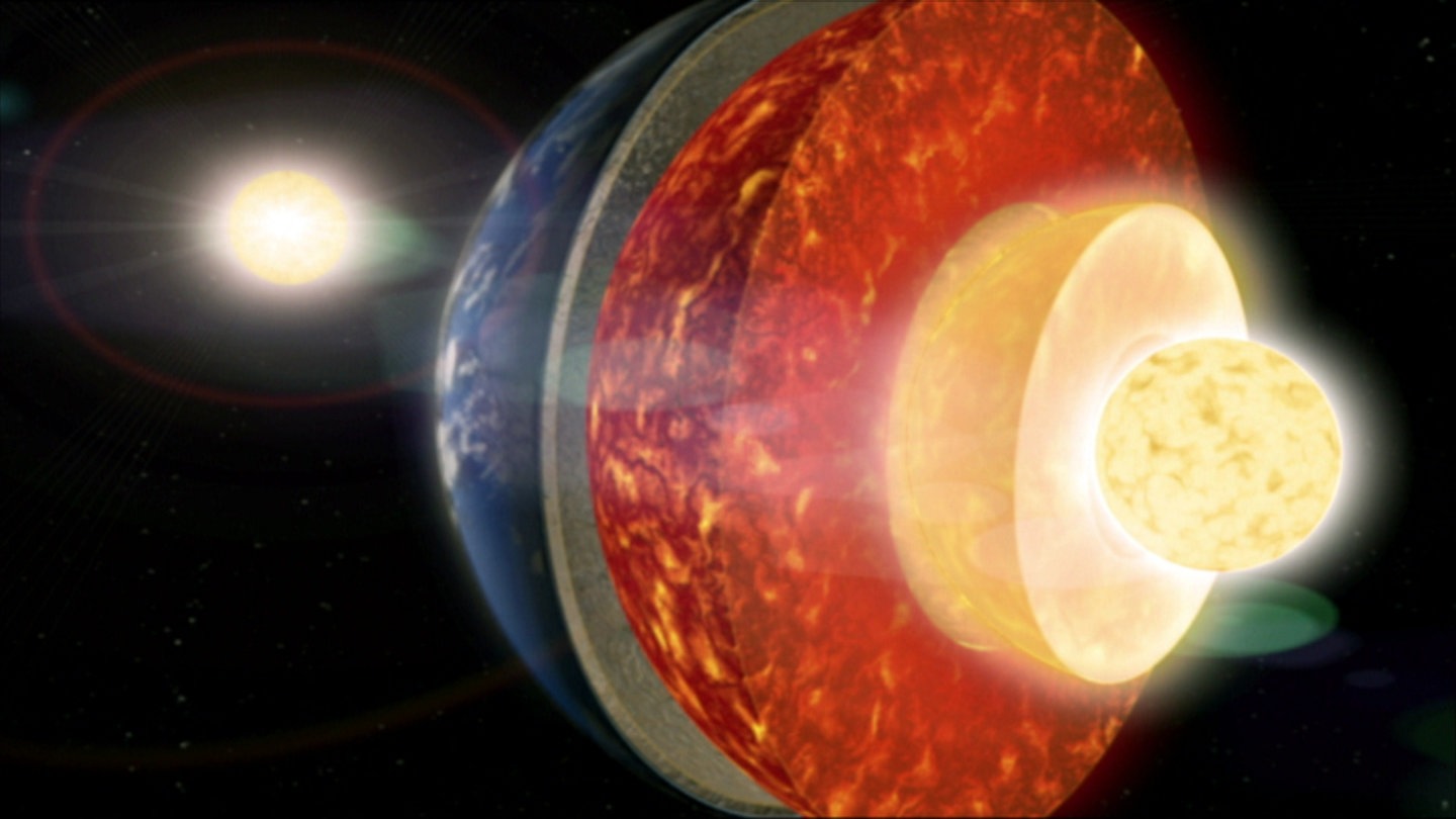 Die Erde besteht aus verschiedenen Schichten: aus Erdkruste, Erdmantel, äußerem und innerem Erdkern. Wie dick diese Erdschichten sind, woraus sie bestehen und welche Temperaturen in diesen Schichten herrschen, zeigt eine Animation.