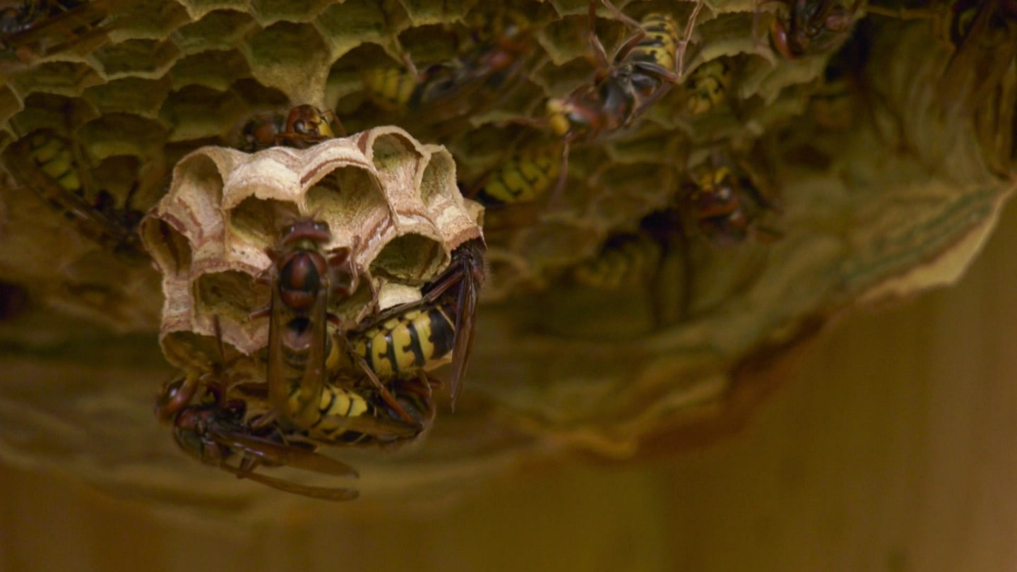 Sind genügend Arbeiterinnen geschlüpft, beschränkt sich die Königin aufs Eierlegen. Von Mai bis Oktober produziert sie bis zu 40 Eier pro Tag und kümmert sich zugleich um die Ordnung der Kolonie. Die Arbeiterinnen legen unterhalb der von der Königin begonnenen ersten Wabe neue, immer horizontal ausgerichtete Wabenteller an. Das ganze Nest wird von einer isolierenden Hülle umgeben, die aus demselben Material wie die Zellen besteht. Steigt die Temperatur im Nest zu stark an, nutzen die Arbeiterinnen ihre Flügel als Fächer, außerdem bringen sie Wasser zur Kühlung.