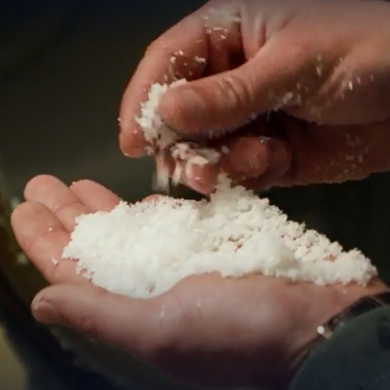 Die Saline Luisenhall bei Göttingen, in der noch wie vor 150 Jahren gearbeitet wird, liegt über einer der seltenen natürlichen Salzquellen. Hier kommt die so genannte Natursole aus einer Tiefe von etwa 470 Metern, wo Grundwasser das Salz aus einer Steinsalzschicht löst. Die Sole sammelt sich in einer Kammer, die unter Druck steht. Wird sie angebohrt, steigt die salzhaltige Lösung fast von alleine nach oben. Nur die letzten 70 Meter muss sie noch hochgepumpt werden. Danach wird sie in die großen und flachen Speicherbecken der Saline geleitet. In diesen so genannten Siedepfannen wird die Sole erhitzt. Die Konzentration der gelösten Salze wird genau kontrolliert.