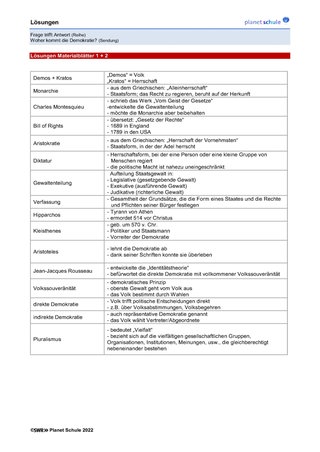 Material: Film „Woher kommt die Demokratie?“; Manuskript des Films