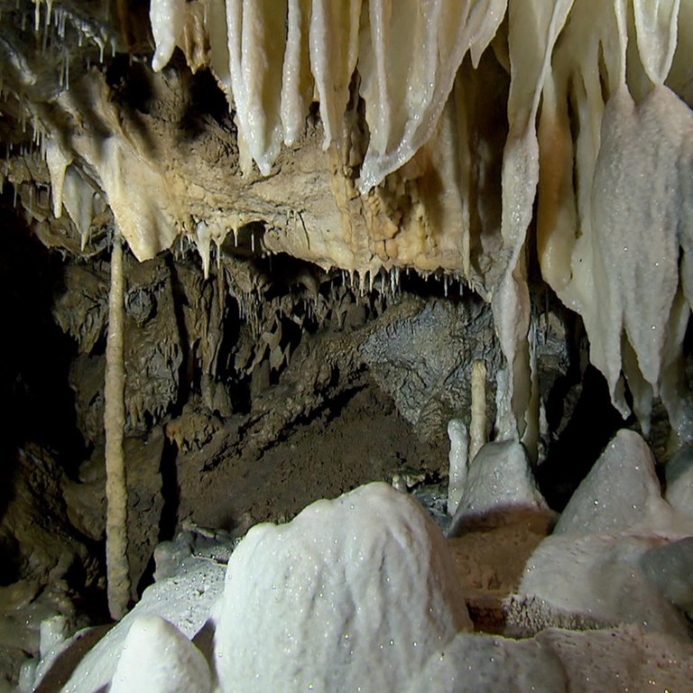 Die markanten Kalkfelsen der Schwäbischen Alb sind ein Produkt des Meeres. Im Jura, vor 200 Millionen Jahren, wimmelte es in Südwestdeutschland nur so von Muscheln, Korallen Schwämmen und anderen Meeresbewohnern. Ihre Kalkskelette bildeten das Gestein. Heute findet man in diesen Schichten gut erhaltene Fossilien von Ammoniten, Ichthyosauriern und anderen Zeugen der Urzeit. Die geologische Vergangenheit der Region hatte einen direkten Einfluss auf die Geschichte der Landwirtschaft, den Bau von Gebäuden und die Entwicklung der Textilindustrie. Über Jahrmillionen wurde das Kalkgestein von Wasser, Wind und Wetter geformt, abgetragen und andernorts, zum Beispiel als Tropfstein oder Kalktuff, wieder abgelagert. Das Phänomen der Verkarstung ist auch dafür verantwortlich, dass ein Teil der Donau bei Immendingen versickert und das Wasser unterirdisch Richtung Rhein „umgeleitet“ wird. Manche Höhlen boten unseren Vorfahren schon während der Steinzeit Unterschlupf. Die Menschen hinterließen dort vor 40.000 Jahren Werkzeuge, Figuren und sogar Musikinstrumente. Faszinierende unterirdische Sinterformationen kann man in Schauhöhlen im Sauerland bewundern. Hier sind die Kalkablagerungen noch älter – etwa 400 Millionen Jahre. Sie stammen aus dem Devon.