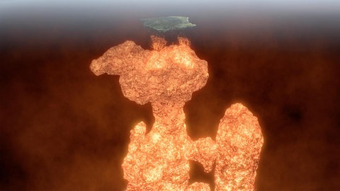 Wie stieg aber damals das Magma vom Plume an die Oberfläche? In einem Prozess, der sich über mehrere Zehntausend Jahre erstreckte, kroch zähflüssiges Magma aus dem Kopf des Plumes bis an die Basis der festen Erdkruste hoch. Dort, an der sogenannten Moho, blieb es stecken, weil die Erdkruste eine geringere Dichte als das Magma hat. Es bildeten sich Schmelzansammlungen, die man "Underplating" nennt. Da die Erde außen kälter ist als innen, kühlte das steckengebliebene Magma ab. Kristalle begannen zu wachsen, so dass eine erste chemische Umwandlung des Magmas stattfand. Diese Phase dauerte wieder viele Zehntausend Jahre. Dabei entstanden nicht nur erste Mineralien, sondern auch ein Gasgemisch, in dem viel Kohlendioxid enthalten war. Dieses löste sich entlang der Moho aus den erkaltenden Magmen heraus. Nur etwa 10 Prozent der nunmehr leichteren Gesteinsschmelze schafften in den folgenden Tausenden Jahren den weiteren Aufstieg nach oben, insbesondere durch Gesteinsrisse, die durch tektonische Störungen verursacht worden waren. Doch erneut blieb die Schmelze stecken, als sie die obere Erdkruste erreichte. Hier schmolz das Magma auch Teile des umgebenden festen Gesteins der Erdkruste an, eine sogenannte Magmakammer entstand.