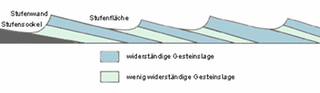 - Entgegen dem Flussgefälle steigt die sog. Mainzer Universitätsterrasse von Mainz in Richtung Loreley zunächst an, um sich am Nord-Ausgang des Rheindurchbruchs wieder abzusenken. Diese "Terrassenverbiegung" lässt sich dadurch erklären, dass sich der Rhein in ein langsam hebendes Gebirge eintieft.