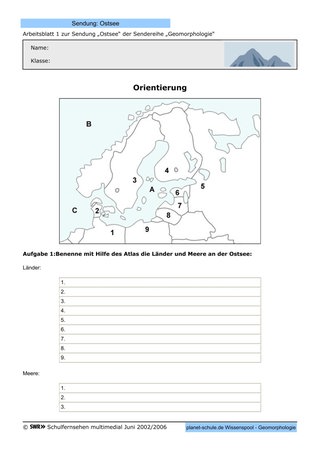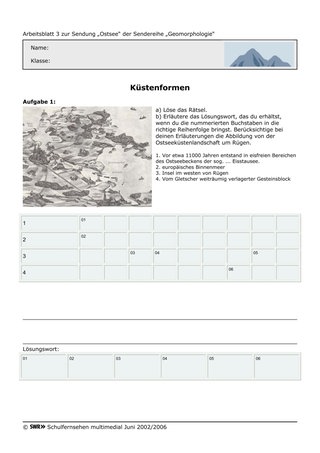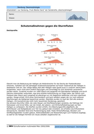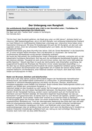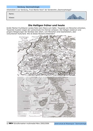 - Die topographische Verortung und Einordnung der Sendung in den Grobraster "Norddeutschland", "Nordseeküste" und "Wattenmeer" sollte mit Hilfe von Atlas, Karte und stummer Karte erfolgen. Die Küstenveränderungen sollte mit dem beigefügten Schülerbegleitmaterial erkannt und beschrieben werden.