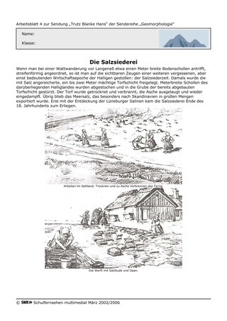 - Von der didaktischen Intention her hat die Sendung jedoch nicht nur eine physisch-geographisch Dimension, auch sozialgeographische Fragestellungen werden aufgegriffen und mit den Naturfaktoren in Verbindung gebracht. Die Themenbereiche "Küstenveränderungen", "Leben am Meer", "Leben mit Naturgewalten", "Eingriffe des Menschen in den Naturhaushalt" und "Folgen menschlicher Eingriffe in den Naturhaushalt" werden am Raum- und Fallbeispiel der nordfriesischen Küste und ihrer Inseln eindrucksvoll und exemplarisch miteinander verknüpft. Der geoökologische Aspekt wird u.a. an den Folgen der Salzgewinnung in historischer Zeit aufgezeigt und auch die heutigen Belastungen durch raumverändernde Eingriffe verlangen nach einer Diskussion.
