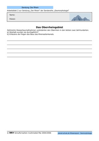 - Thematischer Ansatz (häufig Sek II): Bei der Behandlung von Eingriffen des Menschen in den Naturhaushalt wird exemplarisch die Flusslandschaft Rhein bzw. ein Teilstück derselben behandelt. An diesem Raumbeispiel können verschiedenartige Eingriffe in ein Ökosystem deutlich gemacht und die Problematik der Maßnahmen thematisiert werden. Insbesondere zwei Beispiele können herangezogen werden: Das eine ist die Rheinbegradigung bzw. der Bau des Rheinseitenkanals. Das zweite wäre die anthropogene Veränderung des Deltabereichs (Schleusen, Sieltore) bzw. der Bau des Europoort.