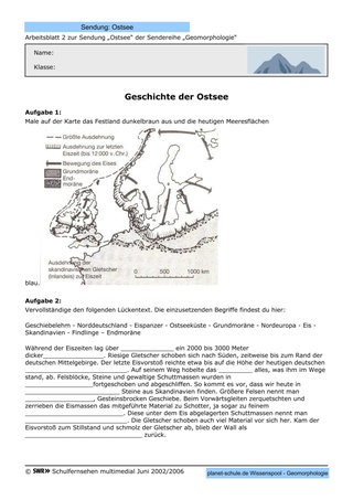 Dann stellt sich die Frage nach der Entstehung dieser Formen. Vielleicht wissen die SchülerInnen schon etwas von der Inlandvereisung Skandinaviens während der Eiszeiten. Hier bietet die Trickdarstellung in der Schulfernsehsendung hervorragendes Material, das durch ein Arbeitsblatt noch unterstützt werden kann. Die nächsten fünf Minuten der Sendung können an dieser Stelle eingesetzt werden.