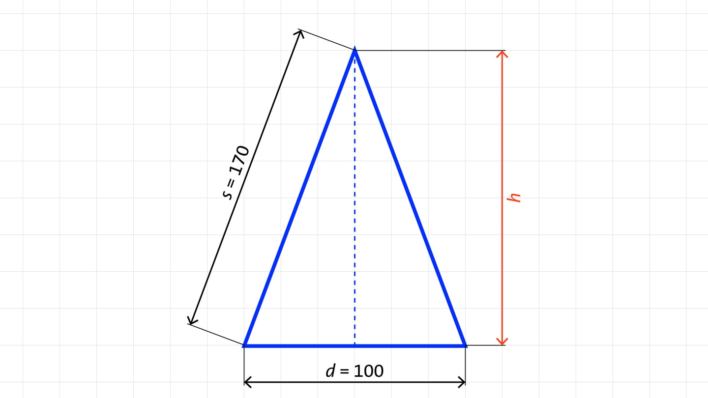 Ein Kegel hat den Durchmesser d = 100 mm und die Mantellänge s = 170 mm. Bestimme seine Kegelhöhe h.