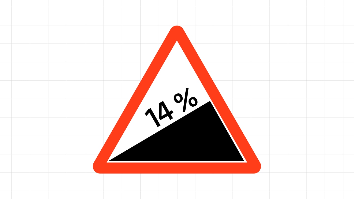 Du fragst die Mitfahrer auf der Rückbank: "Wenn hier eine Steigung von 14% kommt, welchem Winkel gegenüber der Horizontalen entspricht diese Steigung?"