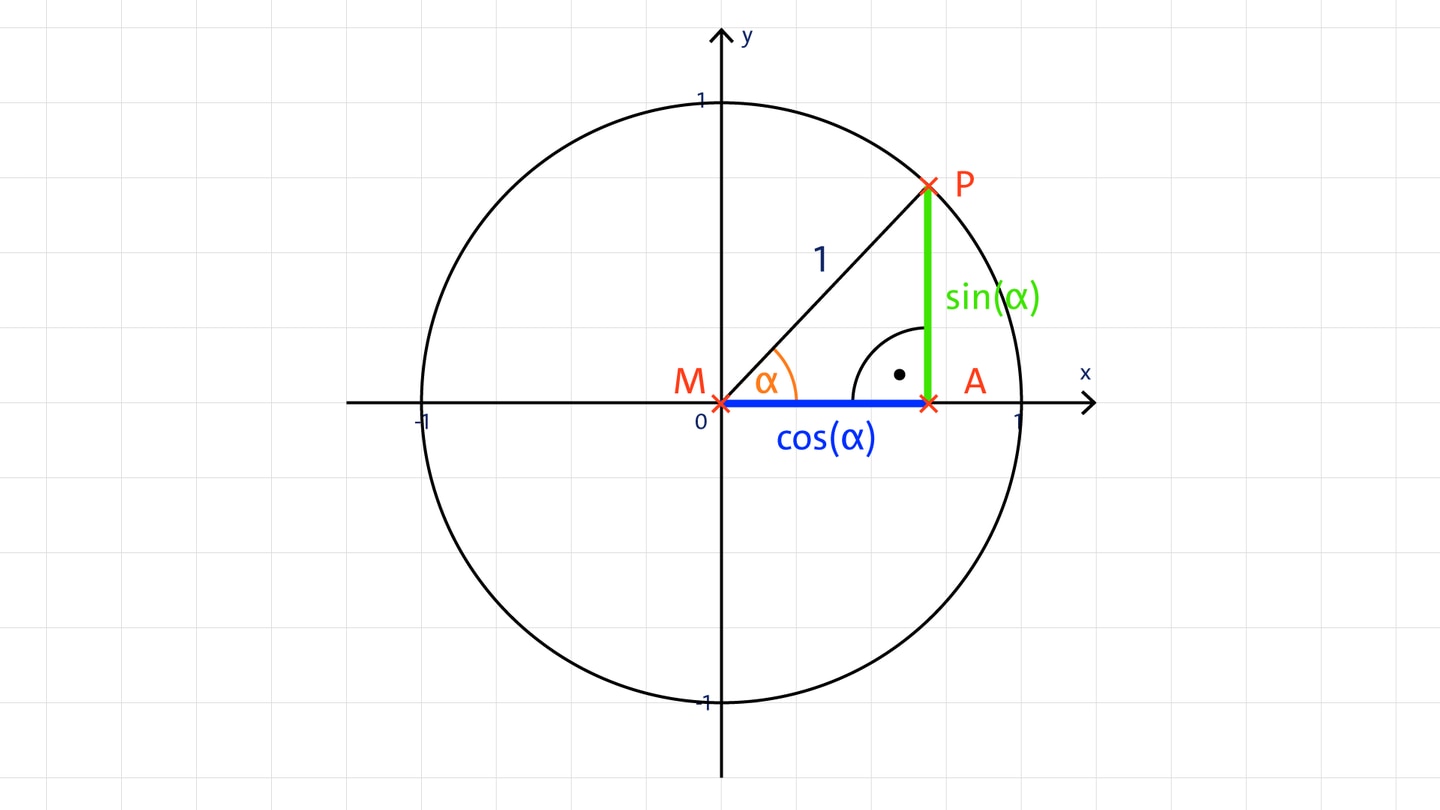 - Auf dem Einheitskreis (mit Radius 1) entspricht der Kosinus eines Winkels α der x-Koordinate und der Sinus des Winkels α der y-Koordinate eines Punktes auf dem Kreis.