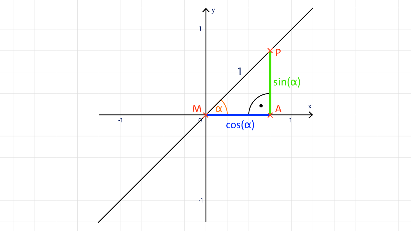 Da der Radius des Einheitskreises immer 1 ist, ergibt sich die Identität:
