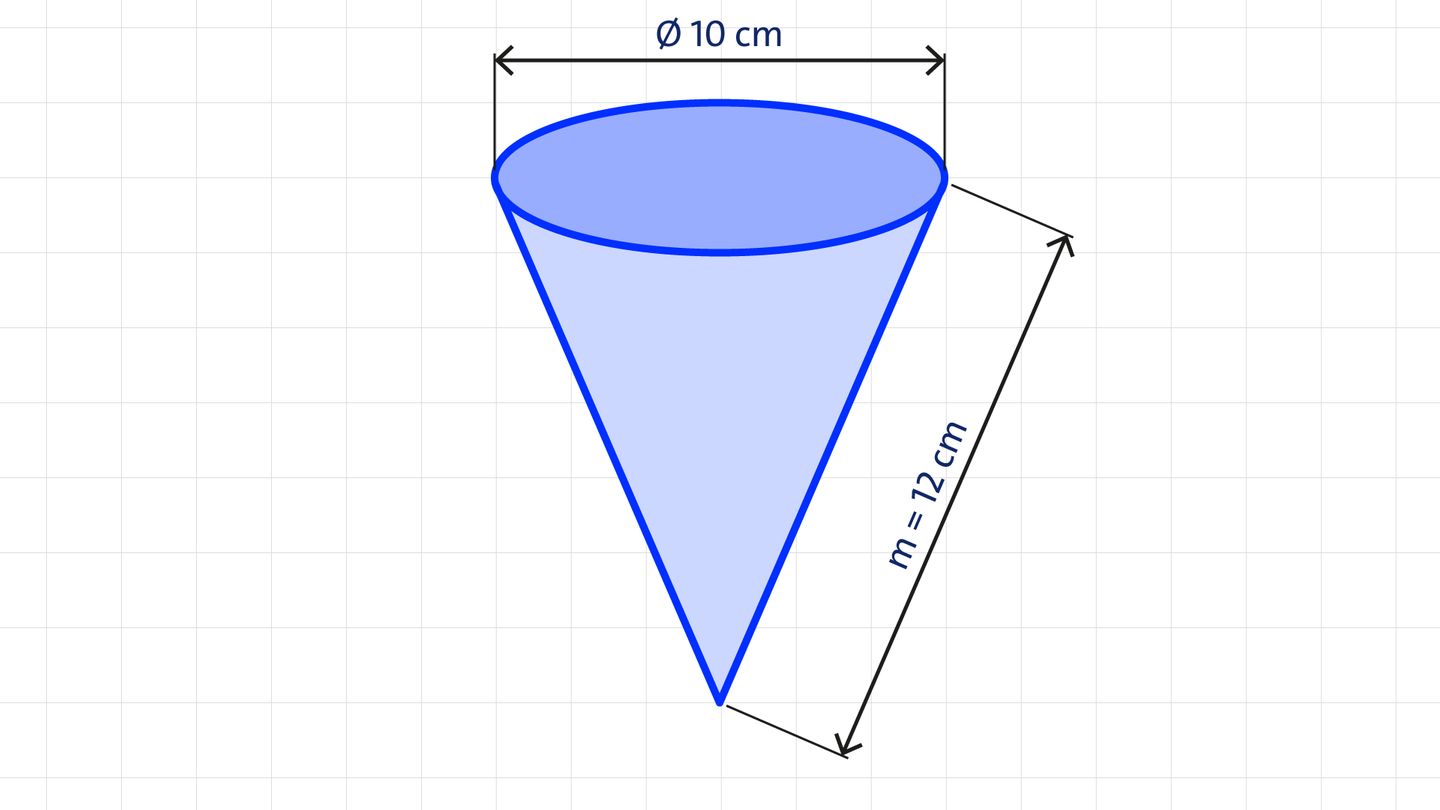 Eine Kaffeefiltertüte hat einen Durchmesser d = 10 cm und eine Mantellinie der Länge m = 12 cm.