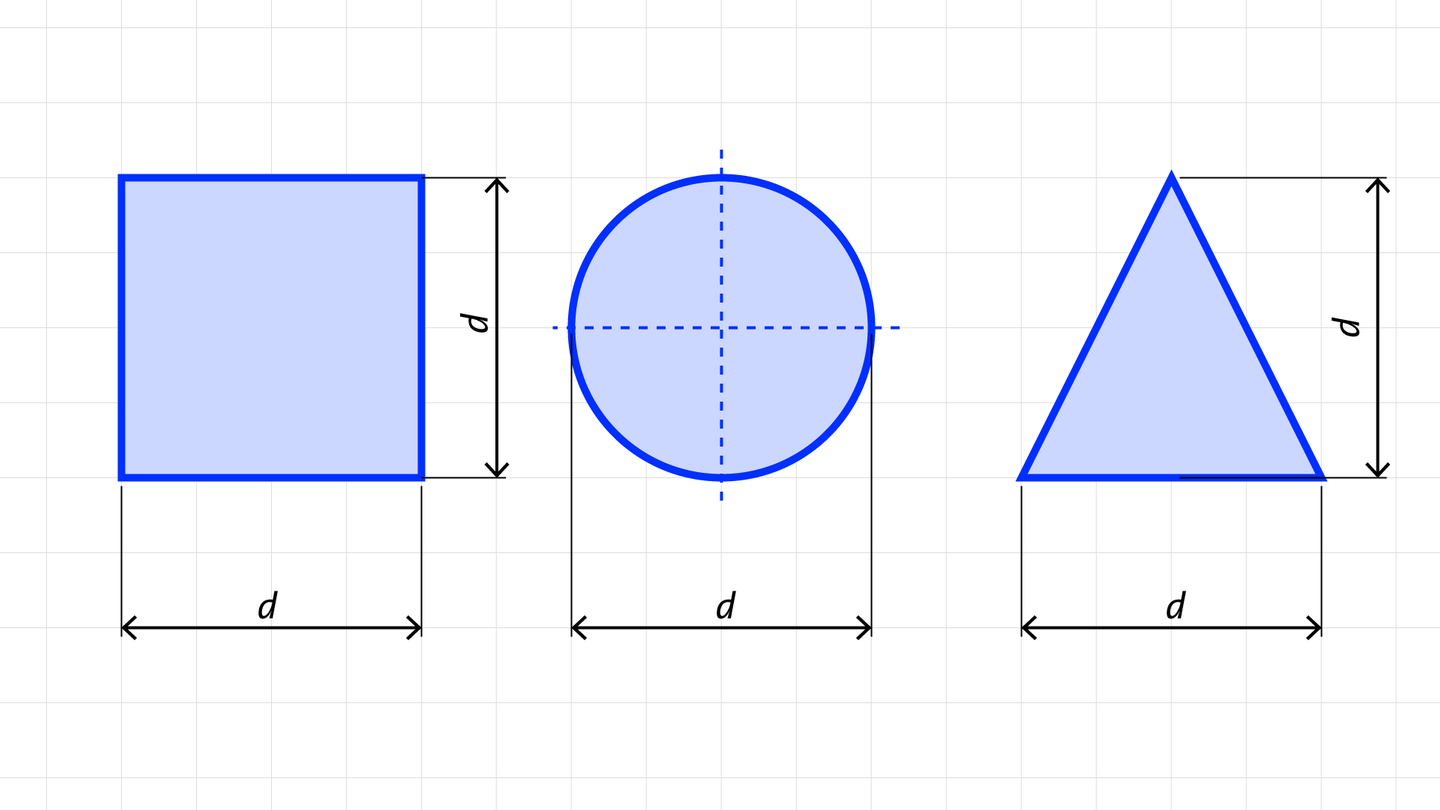 O = 4 · π · r 2 = π · d 2 ; d = O π