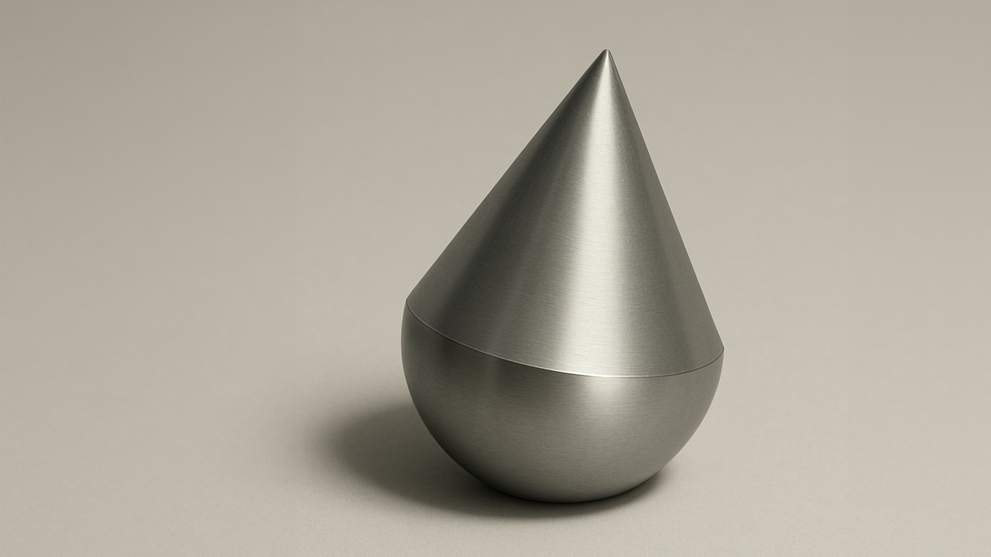 Ein "Stehaufmännchen" besteht aus einer Halbkugel und einem Kegel. Bestimme das Volumen V der Figur, wenn die Höhe h des Kegels genauso groß ist wie der Durchmesser d der Halbkugel.