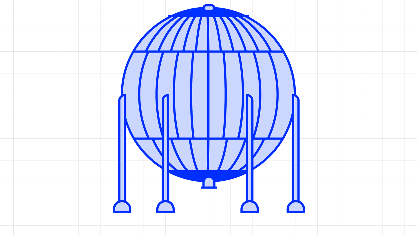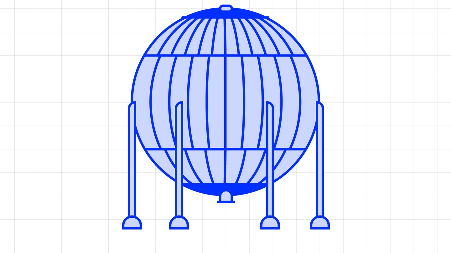 Ein kugelförmiger Behälter für Flüssiggas hat einen Innendurchmesser d = 33,678 m.