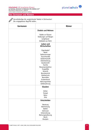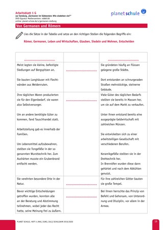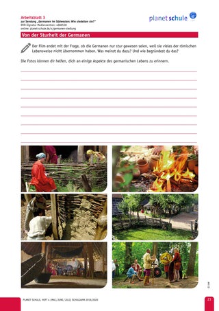Ganz zum Schluss wird der letzte Satz des Films besonders betont: „Vielleicht waren die Alamannen (Germanen) einfach nur stur?“ Im Plenum soll die Klasse ihre Einschätzung abgeben und diese dann als Hausaufgabe verschriftlichen (Arbeitsblatt 3).