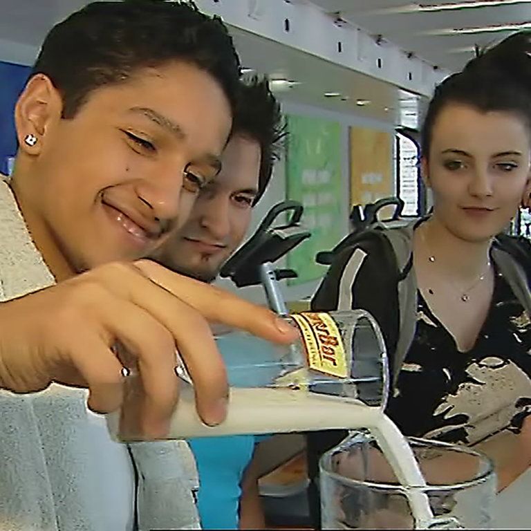 Im Fitnessstudio müssen Mathematiklehrer Basti Wohlrab und seine Schüler nicht nur körperlich ran, sondern auch geistig: Wie teilt man sich das Training am besten ein? Und wie viele Gläser Fitnessdrink lassen sich aus der Karaffe einschenken? Dazu lernen die Schüler, wie man Brüche multipliziert und dividiert und die Kehrwertregel anwendet.