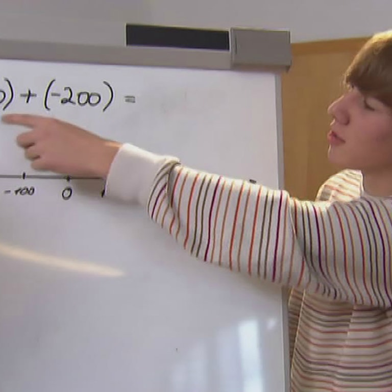 Sinkt die Temperatur unter null Grad, dann zeigt das Thermometer eine negative Zahl an. Negative Zahlen gehören zu den ganzen Zahlen, wie auch die positiven Zahlen. Basti Wohlrab und seine Schüler lernen auf der Wetterstation Hohenpeißenberg die Rechenregeln dafür und wie man diese Zahlen an einer Zahlengerade darstellen kann. Die Schüler lernen, was eine Temperaturskala ist und wie Guthaben und Schulden auf ihrem Konto entstehen.