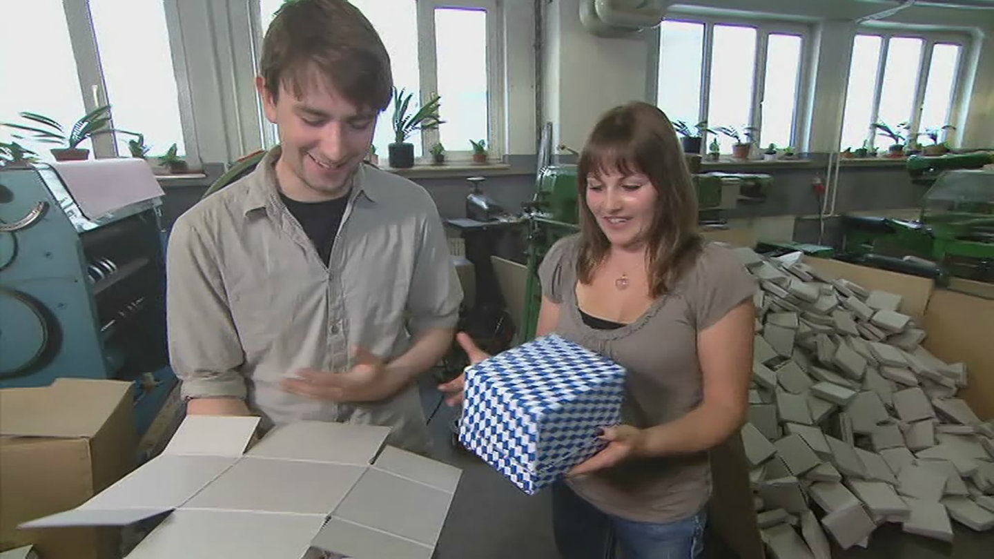 Basti Wohlrab trifft Nicola und Felix in einer Karton-Fabrik, wo die beiden herausfinden wollen, wie groß ihr Karton für ein Geschenk sein muss – und was er in Blattgold kostet. Dazu müssen die beiden die Oberfläche des Kartons berechnen und dazu brauchen sie zuerst die Form und die passende Formel zur Berechnung der Flächen.