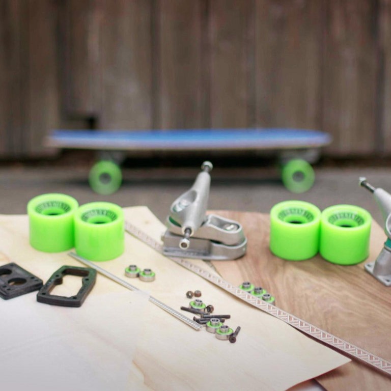 Das Besondere an diesem Sportgerät sind neben seiner Form und dem Fahrgefühl auch die speziellen Achsen. Die sind wendig und sorgen für den Wellengang auf dem doch recht trockenen Asphalt. Wie auf einem Surfbrett im Meer auf einem Brecher.