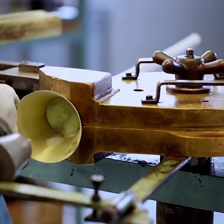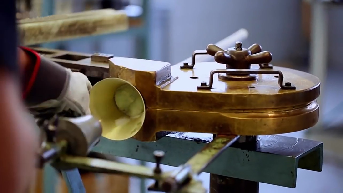 Metallblasinstrumentenmacher-Meister Ralf Gärtner aus Mainz zeigt, wie man ein Waldhorn in rund 80 Arbeitsstunden herstellt.