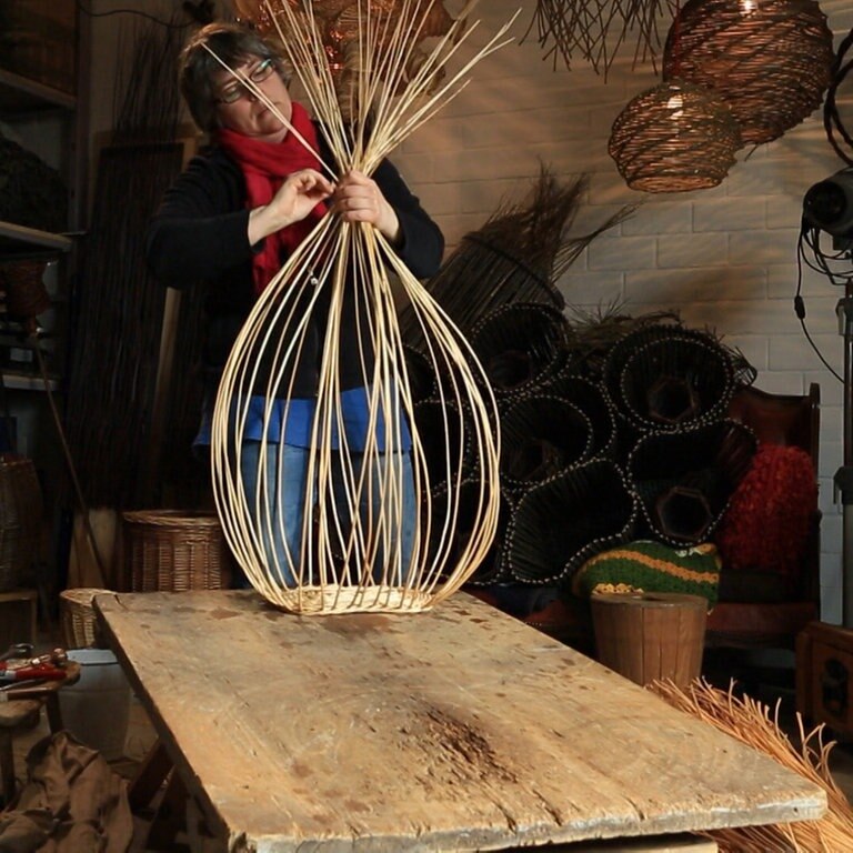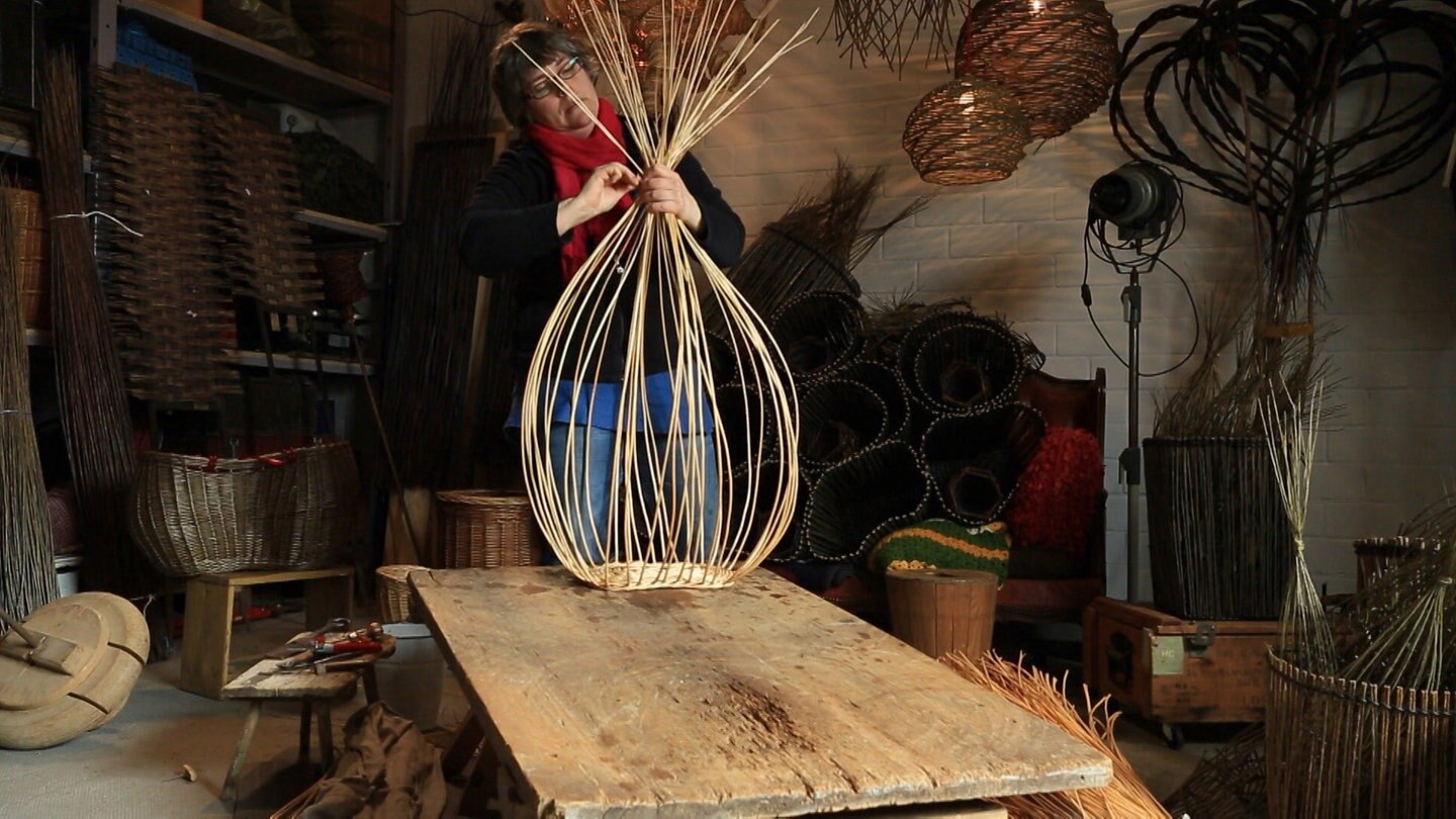 Monika Nickel-Stein aus Kindenheim ist Handwerksmeisterin im Korbflechten. Sie zeigt, wie ein origineller, ergonomisch geformter Einkaufskorb gemacht wird.