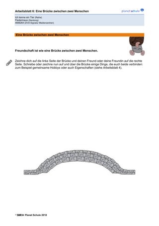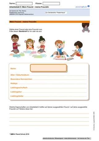 Auf Arbeitsblatt 5 erstellen die Schülerinnen und Schüler einen kurzen Steckbrief zu einem Freund/einer Freundin und werden sich so deren Interessen und Eigenschaften bewusst. Das erleichtert ihnen dann die Bearbeitung von Arbeitsblatt 6, auf welchem sie sich ihrer eigenen Interessen und Eigenschaften bewusst werden (müssen) und auf dem sie die Gemeinsamkeiten mit ihren Freunden/Freundinnen aufschreiben beziehungsweise aufzeichnen.