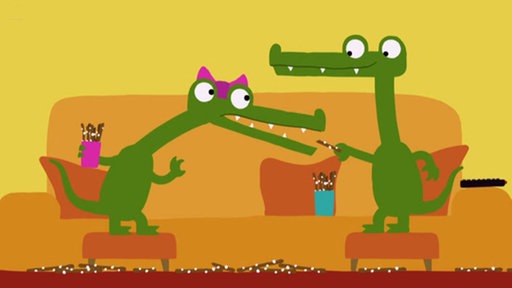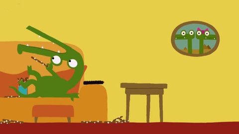 Damit die Schülerinnen und Schüler in ihrer Kreativität nicht eingeschränkt werden und möglichst vielfältige Ideen zu möglichen Problemen des Krokodiles erarbeitet werden können, wurde der Screenshot der Sendung so gewählt, dass das im Film gezeigte Problem nicht unbedingt erkannt werden kann. Zudem bleibt so der Überraschungseffekt im Film erhalten.