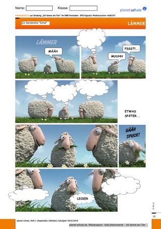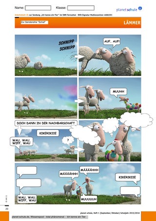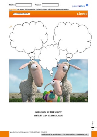 Für alle: Ein Comicbild als Zusammenfassung der im Film erzählten Geschichte in Einzel- oder Gruppenarbeit (Arbeitsblatt 3: Ende – Was denken die drei Schafe?).