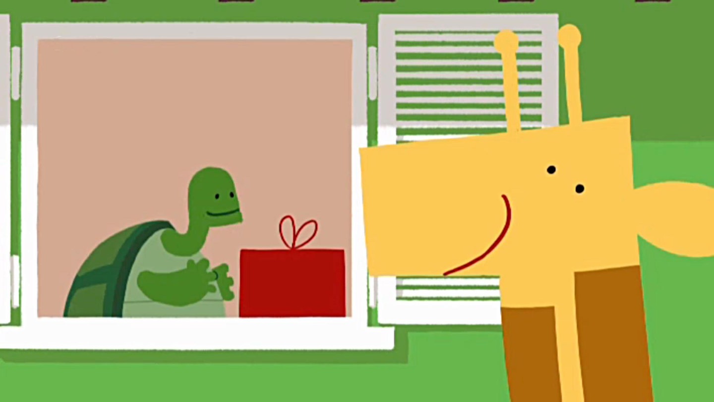 Nachdem beide Filme schon kurz besprochen wurden, so dass gesichert ist, dass der Inhalt verstanden wurde, spielen je zwei Kinder die letzte Sequenz, in der die Giraffe der Schildkröte das Päckchen auf den Rücken legt, mit Tierfiguren und einem kleinen Päckchen nach und sprechen, was die jeweiligen Tiere denken. Nach dem Spiel werden die Kinder gefragt, wie sie sich dabei gefühlt haben.