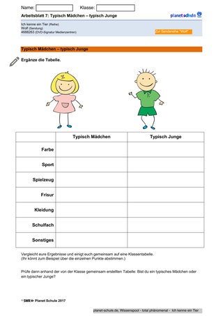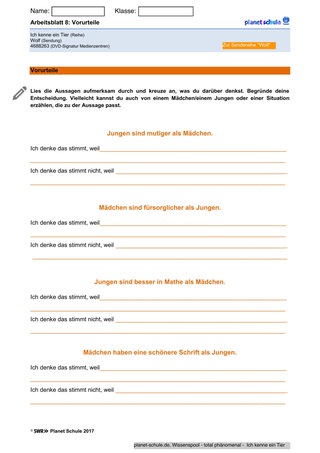 Anschließend bearbeiten die Schülerinnen und Schüler nacheinander die Arbeitsblätter 6 bis 8. Hier sollen sie sich mit den Rollenbildern, Stereotypen und Vorurteilen gegenüber Mädchen und Jungen auseinandersetzen bzw. sich deren bewusst werden. Gleichzeitig üben sie sich darin ihre Meinungen zu begründen.