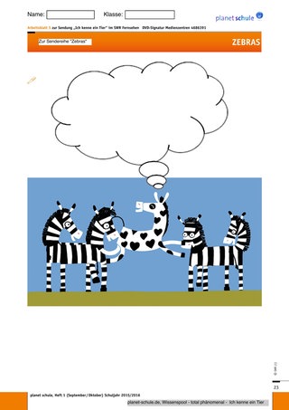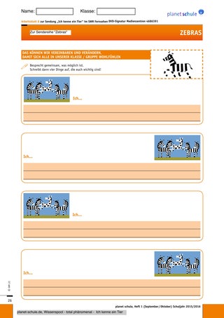 Für alle nach der ersten Sichtung des Films: Wie fühlt sich das Zebra in der Gruppe? Einzel- oder Gruppenarbeit mit Arbeitsblatt 5, anschließend Plenumsgespräch.