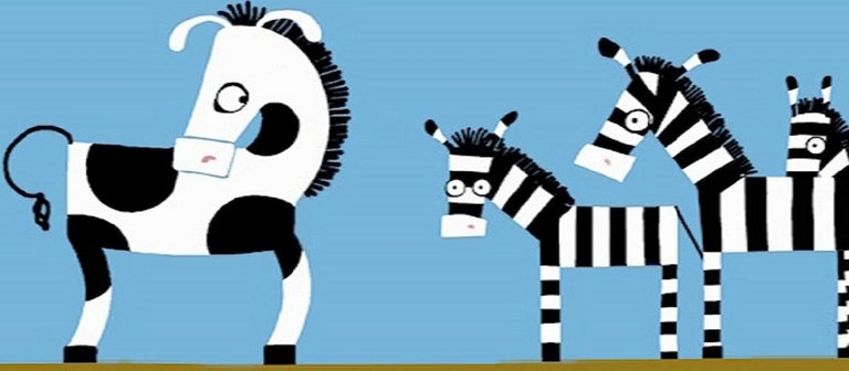 Das Zebra im Film „Zebra“ ist zunächst allein mit seiner Abweichung, bekommt dann aber durch die anderen die Bestätigung, dass sein Anderssein wertgeschätzt wird.