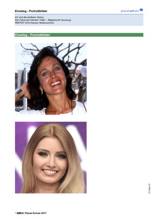 Zu Beginn der Stunde legt die Lehrperson den Schülern zwei Bilder von jungen Frauen vor, die sich deutlich unterscheiden. Ein Foto stammt aus den 1970er Jahren, das andere Bild ist in der Gegenwart aufgenommen. Die Lehrperson stellt nach dem Zeigen der Bilder den Schülern im Plenum die Frage, was ihnen dabei auffällt. Hier wird erwartet, dass die Schüler hinsichtlich des Looks und der Bildbearbeitung schnell auf den zeitlichen Unterschied kommen, wobei deutlich herausgestellt werden soll, dass Schönheitsideale sich im Laufe der Zeit wandeln und heute deutlich anders aussehen als früher.