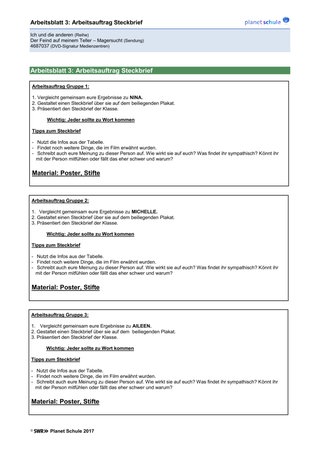 Nach Beenden des Films ist es nun wichtig, die Informationen zu vertiefen, weshalb die Schüler in Gruppenarbeit jeweils eine Protagonistin aus dem Film unter die Lupe nehmen. Aufgabe ist es nun, die Fakten zur Person nochmals zu besprechen und die Tabelle, wenn nötig, zu ergänzen, um nun einen Steckbrief zu erstellen, der nach Fertigstellung der Klasse präsentiert wird. (Arbeitsblatt 3)