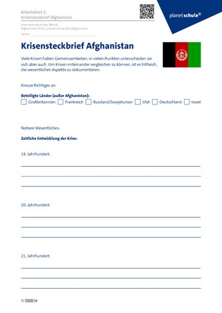 - Überleitung zur Konflikt-Analyse mithilfe des Arbeitsblattes 2 (Krisensteckbrief Afghanistan), kurze Erklärung der Lehrkraft dazu.