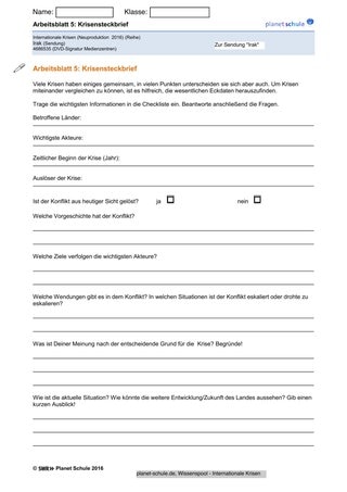 | Abschluss | Erstellen des Krisensteckbriefes | Einzel- oder Partnerarbeit | Arbeitsblatt 5 |
