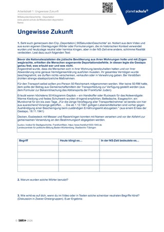Material: Filmclip „Deportation“, Arbeitsblatt 1
