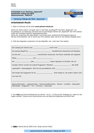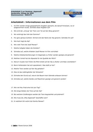 Erwiesenermaßen prägt sich beim Betrachten eines Unterrichtsfilmes eher das Bild ein als das gesprochene Wort. Deshalb enthält das Arbeitsblatt "Informationen aus dem Film" viele Fragen, die sich nur über aufmerksames Zu-Hören erschließen lassen. Der gesamte Fragenkatalog ist wohl von einem Schüler/einer Schülerin alleine nicht zu bewältigen, es sei denn, man stellt den Film zur Verfügung (z.B. über den Filmpool von Planet Schule), so dass er individuell betrachtet und gegebenenfalls angehalten werden kann, um sich Notizen zu machen. Soll der Film im Plenum betrachtet werden, so bietet sich Arbeitsteilung an, was die Eigenverantwortung und die Verantwortung für die Gruppe steigert, weil anschließend die Antworten präsentiert werden müssen.