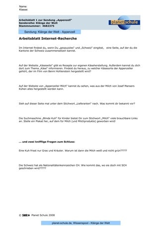 Die meisten SchülerInnen sind mit der selbständigen Suche nach Informationen im Internet überfordert. Das Arbeitsblatt "Internet-Recherche" bietet ihnen einige Adressen an, die sie zu den gewünschten Informationsquellen führen. Der Vorteil dieser Vorgabe ist, dass es sich um kindgerechte Seiten handelt und dass die Suche relativ schnell zu einem Erfolg führt.
