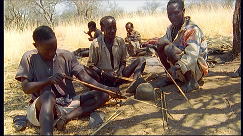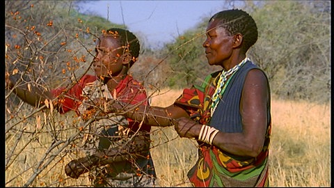 Die Hadzabe leben in der kargen Savanne im ostafrikanischen Grabenbruch. Sie sind nur noch knapp 1.000 an der Zahl. Eine kleine, versteckte Gruppe von ihnen lebt fast noch so, wie unsere Vorfahren das vor Tausenden von Jahren taten: Sie jagen und sammeln. Die Hadzabe nehmen, was die Natur ihnen gibt: Die Frauen und Kinder pflücken Beeren von den Sträuchern. Sie sammeln die Früchte der Affenbrotbäume und graben Wurzeln aus. Die Männer bringen mit Pfeil und Bogen Antilopen zur Strecke.