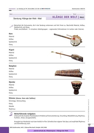 Die Sendung wurde für den fächerverbindenden Einsatz konzipiert. Sie stellt das afrikanische Land Mali vor, das unter geographischen, gesellschaftlichen, wirtschaftlichen und musikalischen Gesichtspunkten für den Unterricht relevant ist. Die Protagonisten sind Menschen, die Musik machen, denn Musik spiegelt die Besonderheiten einer Gegend und deren Bewohner wider, Musik vermittelt Lebenserfahrung, Tradition, Geschichte, Gefühle und Religion. Sie hat soziale, gemeinschaftsbildende Funktionen. Sie überbringt Botschaften, macht politische Aussagen und unterstützt religiöse Rituale. In der Musik finden sich Entsprechungen zur Landschaftsform. Instrumente imitieren Klänge aus der Natur und werden oft aus Materialien gebaut, die vor Ort verfügbar sind. Die Protagonisten ermöglichen mit ihrer Musik und mit ihrer Person einen Einblick in die Lebensweise ihres Volkes, die soziale Organisation, die wirtschaftlichen Umstände, die Geschichte und die Kultur.