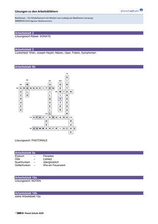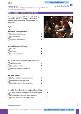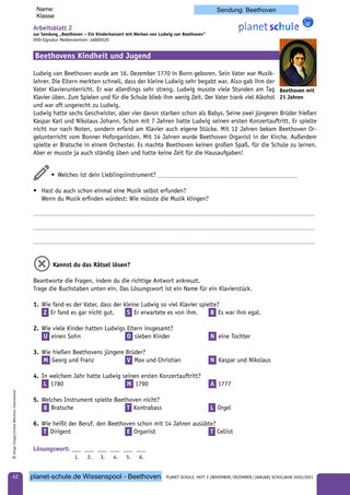 - Arbeitsblatt 2: Beethovens Kindheit und Jugend mit Fragen und Lösungswort