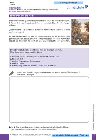 Arbeitsblatt 8a: Beethoven und die Natur; selbst eine Gewitterszene