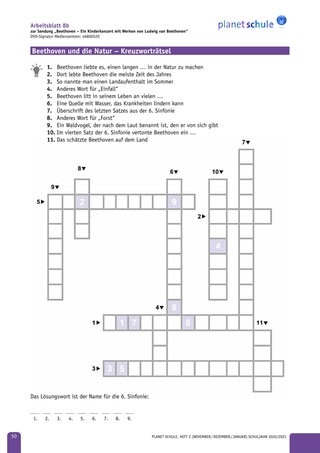 ■ Arbeitsblatt 8b: Beethoven und die Natur – Kreuzworträtsel