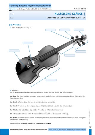 - Die Violine (AB 1 und 2) – Grundlagen der Tonentstehung und Bauteile